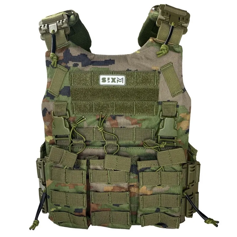 El Chaleco SIXMM FCS boscoso español redefine la movilidad táctica. Fabricado en resistente 500D Poliéster y equipado con bucles Full QD para despliegue rápido. Incluye un triple portacargador frontal y un bolsillo interior en el fajín. Su diseño ajustable asegura un ajuste perfecto, superando a otros chalecos del mercado.