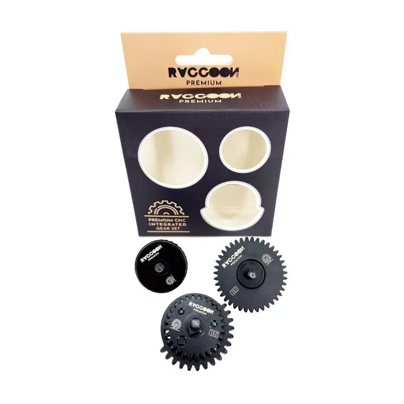 Optimiza el rendimiento de tu réplica con los engranajes 13:1 Premium Raccoon CNC de acero, diseñados para mejorar la velocidad de disparo y la respuesta del gatillo. Fabricados con precisión CNC en acero 40Cr, ofrecen una calidad superior a los de la marca SHS, garantizando mayor resistencia, suavidad en el engranaje y una vida útil más prolongada para tu gearbox.