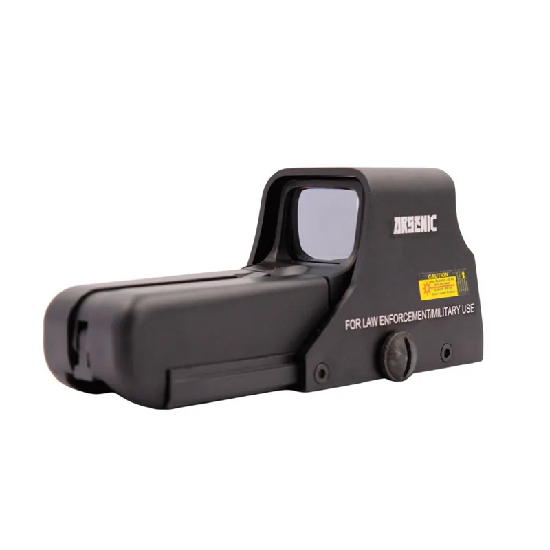 Este modelo se inspira en la estética del icónico EOTech 552, replicando su esencia con fidelidad: un chasis robusto y una amplia ventana cuadrada. Estas características brindan un campo de visión amplio y despejado, lo que permite apuntar con ambos ojos abiertos, mejorando la conciencia situacional y facilitando la adquisición del blanco instantánea en escenarios dinámicos, especialmente en combates cercanos tipo CQB.