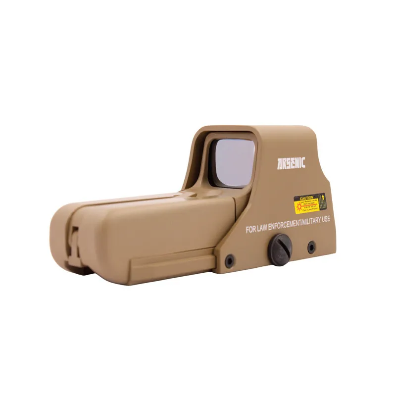 Domina el campo con la Mira Holográfica Arsenic Argon AS552 tan. Su diseño inspirado en el EOTech 552 ofrece una amplia ventana cuadrada para apuntar con ambos ojos abiertos. La Retícula de Cruz Rojo/Verde garantiza un encare rápido y claro en cualquier luz. Construida en aluminio con 1x de aumento y Montage Picatinny. ¡El visor Red Dot de estilo táctico y alto rendimiento!