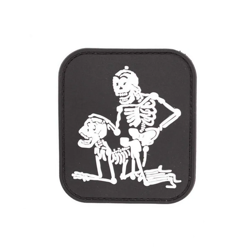 El Parche Esqueletos PVC 3D Negro Fluorescente combina estilo y funcionalidad. Resistente y detallado, su diseño 3D y efecto fluorescente lo hace perfecto para personalizar chalecos, mochilas o ropa táctica.