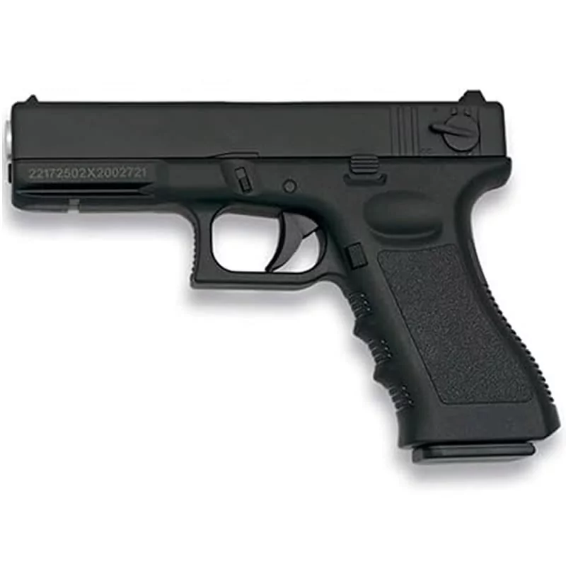 La pistola Golden Eagle Glock metal muelle es una réplica económica con cuerpo metálico y disparo por acción manual, ideal para iniciación o entrenamientos. Combina resistencia, realismo y facilidad de uso, siendo perfecta como secundaria o para prácticas de tiro básico. Ligera, duradera y con estética táctica.